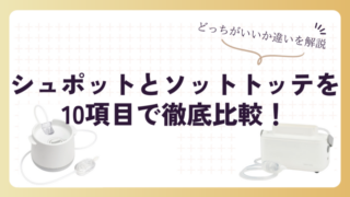 ベビーグッズ シュポットとソットトッテを10項目で徹底比較!どっちがいいか違いを解説 この記事では、シュポットとソットトッテの違いについて紹介します。結論から言うと、シュポットは「自宅でしっかり吸って時短したい人向けの電動鼻吸い器」、ソットトッテは「静音性と持ち運びやすさを重視したい人向けのハンドポンプ鼻吸い器」です。どちら... 2026.03.20 ベビーグッズ